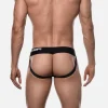 Black Jock-Strap made from nylon rib. The cup is accented with white stitching and black piping for a stylish contrast. The 50mm waist elastic is wide, black, soft yet sturdy with ultimate stretchability and hold. Our Black Jock goes hand in hand with the comfort our men have come to expect from PUMP! products.