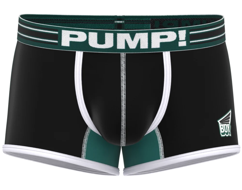 Boost boxers bring you that extra bit you need in the last stretch of your game. Its dark green stretch cotton crotch keeps things cool while you’re heating things up.  It has a stretchy leg elastic to fit any leg size.  A double layered black mesh cup with green cotton liner and sporty piping is soft and supports you at the same time. Custom thermal pressed BOY insignia give it the pro-league look it deserves.