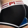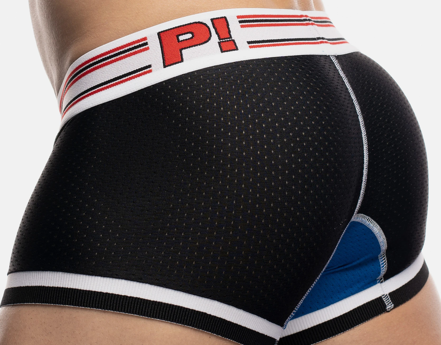 Set a new pace for your underwear collection with the Circuit Touchdown Boxer. The wide, white waistband featuring a red and black classic PUMP! logo ensures a secure fit, no matter how fast you live life. The checkered-flag-inspired black mesh body, highlighted with bright white leg elastics and an electric blue undercarriage, forms to your curves while providing unmatched breathability to keep you going all day in comfort and style.