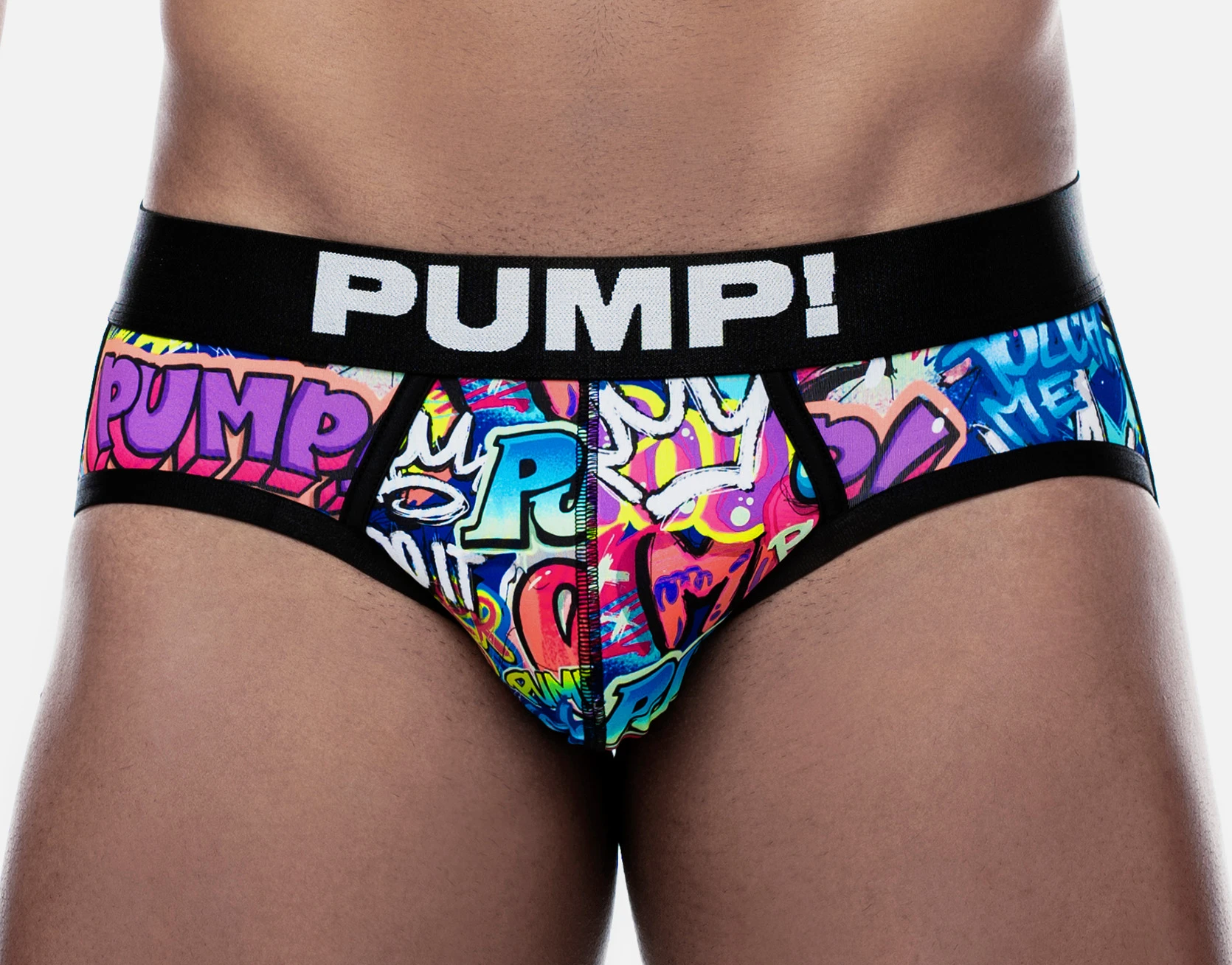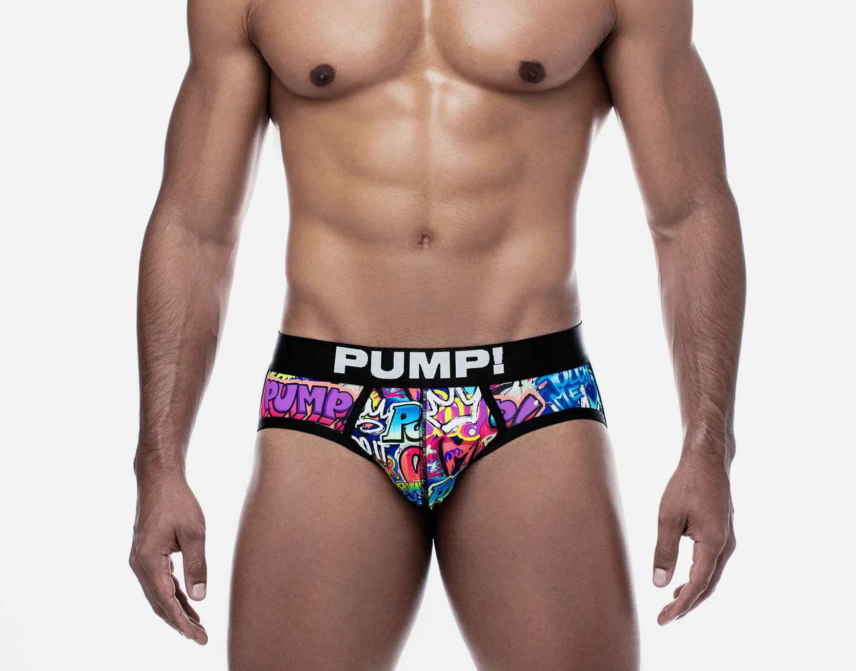 Make a statement in PUMP!’s Drip Full Front Jock. With a full front panel dripping in bold colors inspired by wildstyle graffiti, you’ll look hot wether you’re in the locker room or bedroom. The moisture-wicking, microfiber fabric will keep you dry and comfortable while the black waistband highlighted with the classic white PUMP! logo provides a snug and secure fit for any activity.