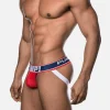 A true classic the Fever Jock features a cup accented with navy elastic piping and white central stitching. The 50 mm waist elastic is tri-color: red, navy and white, soft yet sturdy with unbridled stretchability and hold. Complemented beautifully by a sharp white rear elastic to provide all day comfort and style.