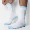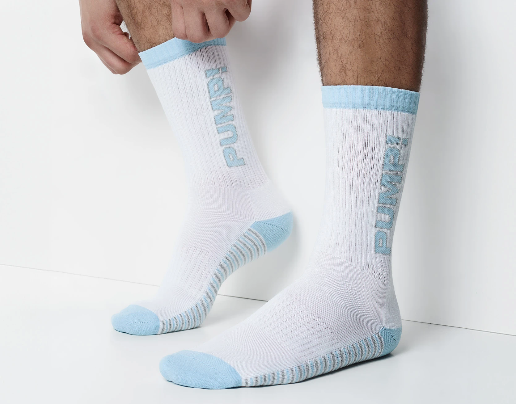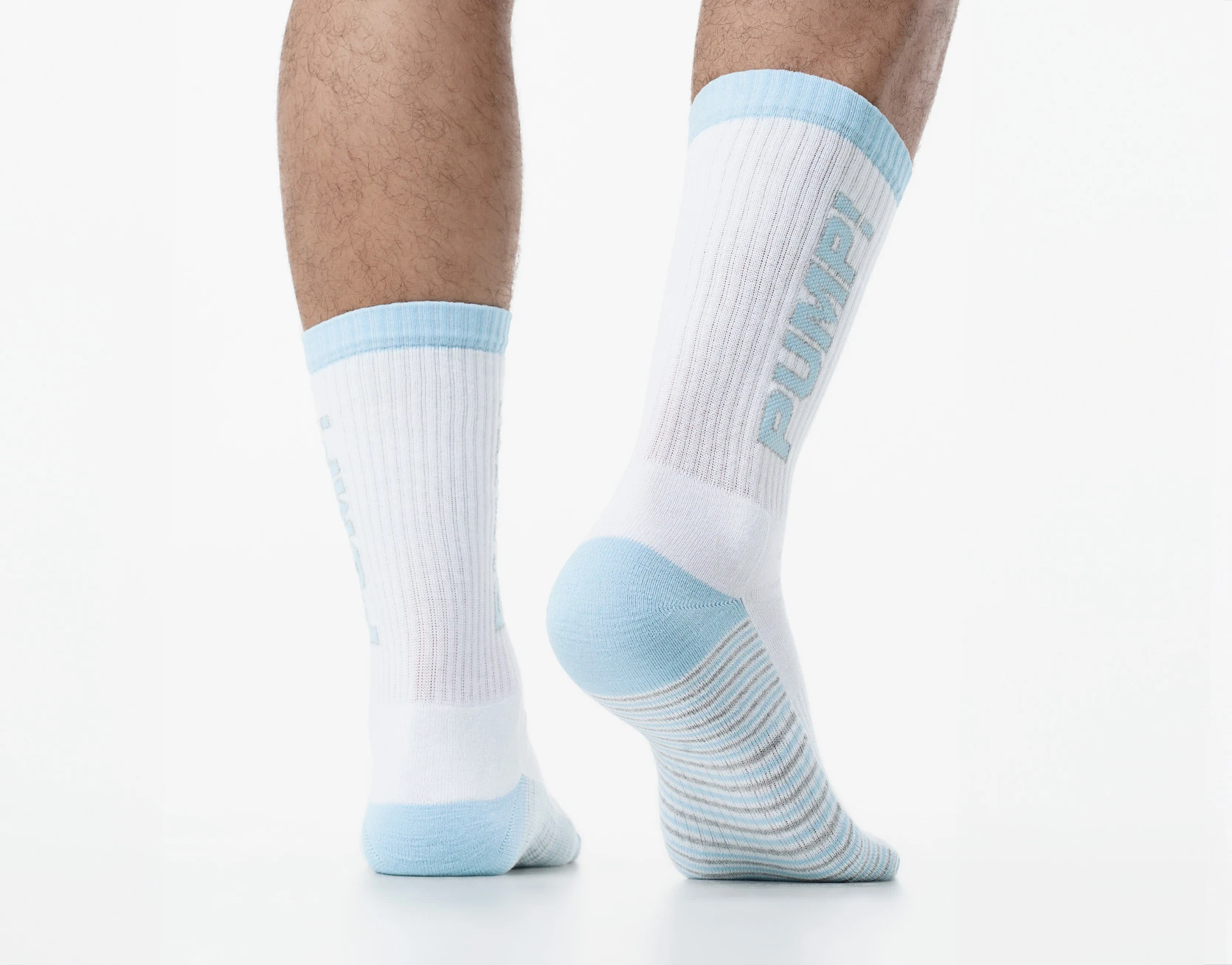 A fresh option for your sock drawer. PUMP!’s Frost Crew Socks are designed for comfort and functionality. They feature a ribbed leg that gives you a secure fit, terry knit cushioning, and a sky blue, white, and mĂ©lange gray striped sole with contrasting details for a modern look.