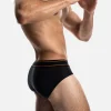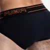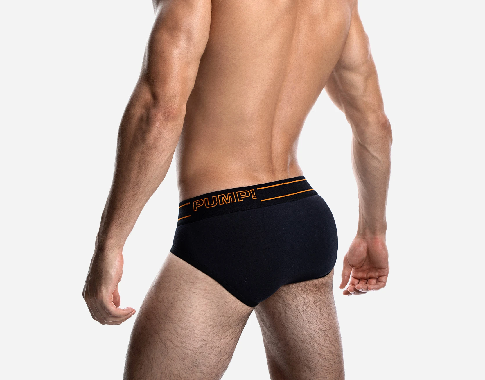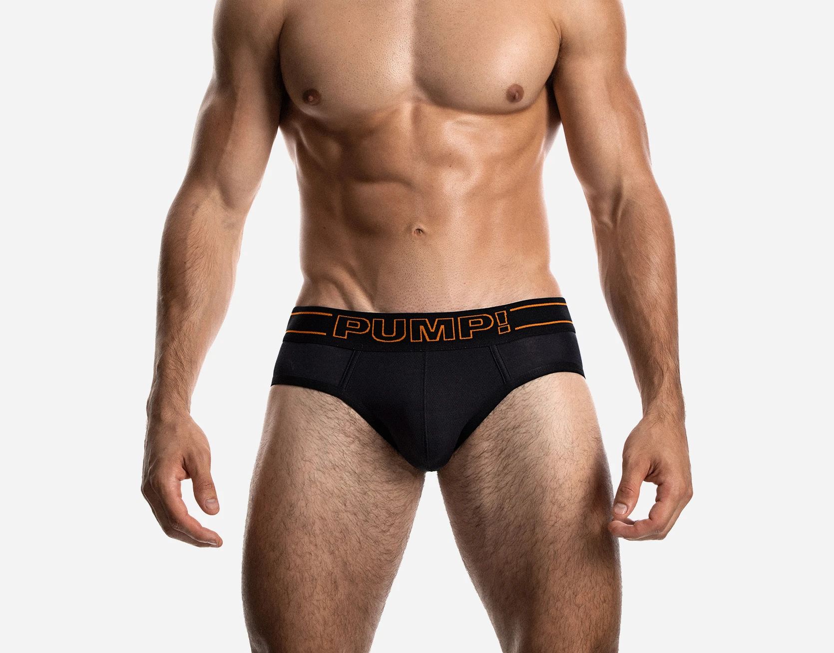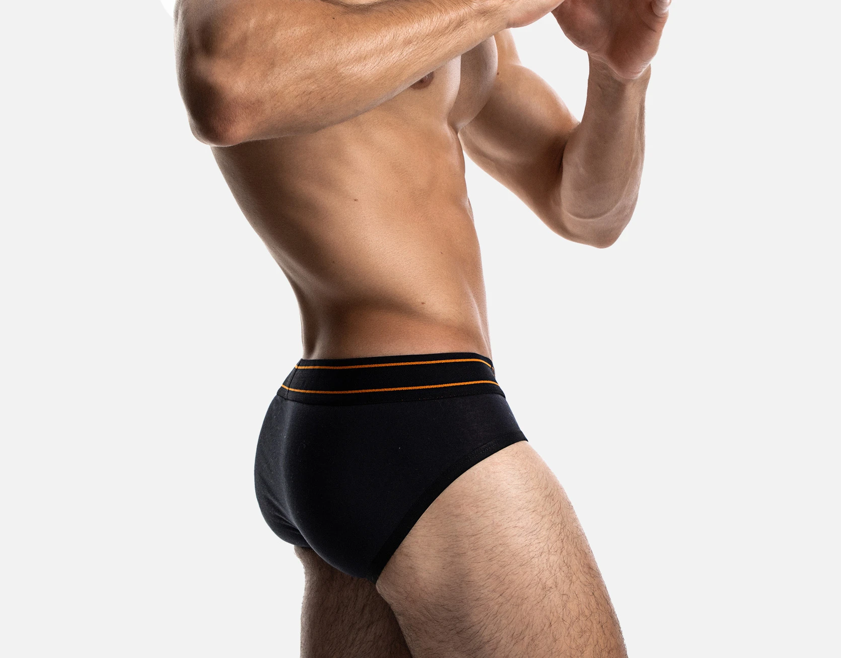 Own the night with the nocturnal design of our NightLight Brief. Its black micro mesh and cotton body and its Black cotton piping delectably contrasts with its 45mm orange and black elastic waistband. The drastically distinctness of orange and black brings to light a classic and bold expression.