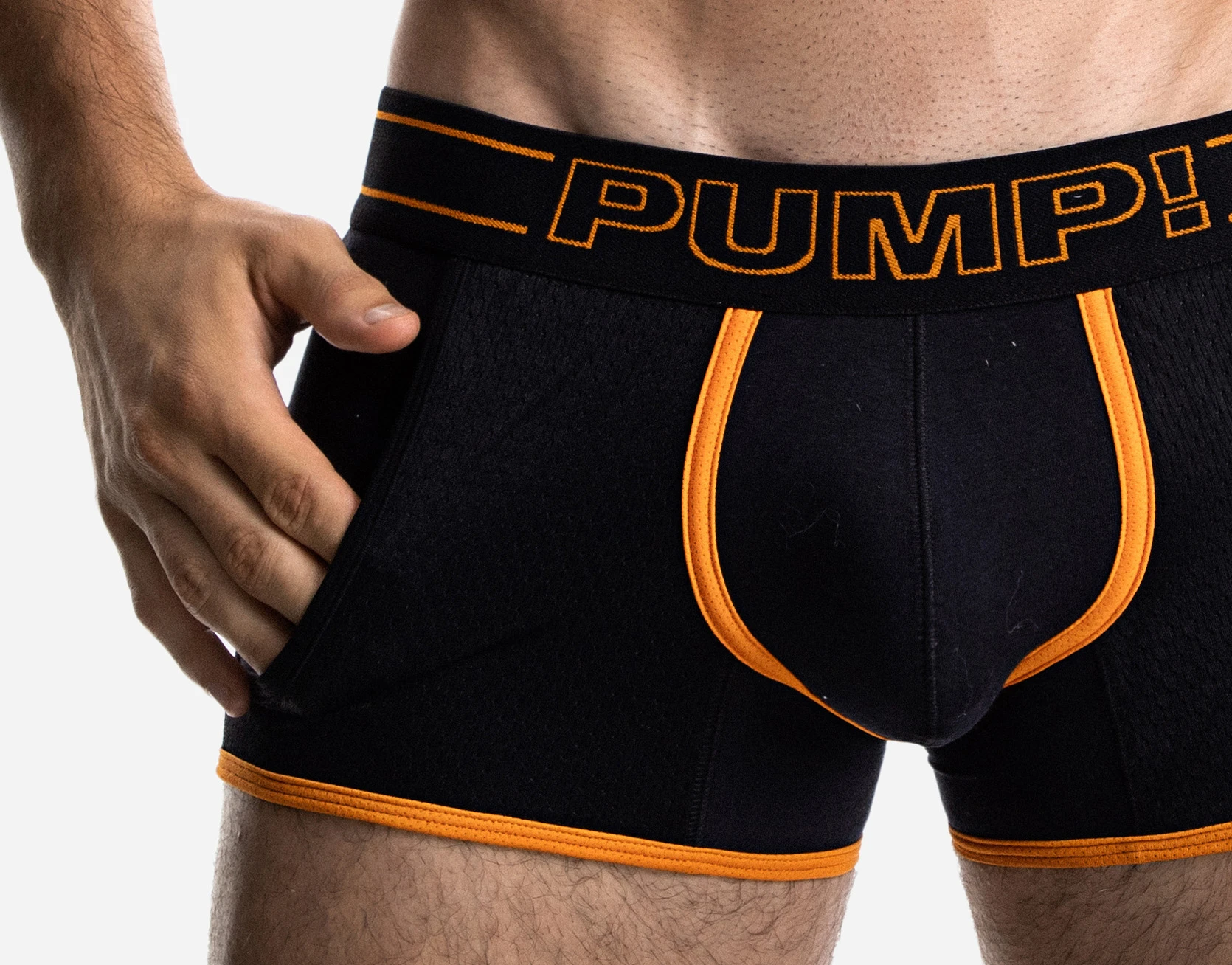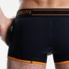 The NightLight Jogger is a garment that is designed to give you comfort while wearing with its black cotton body, black mesh pockets, attached thanks to its 45 mm black and orange elastic waistband and a black micromesh cup with tone on tone stitching.