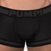 The dark black on black style of our Touchdown Ninja is a sexy style for nighttime antics. Our PUMP! breathable mesh will keep you in control when things get a little steamy. Night or day, the cotton cup gives you extra support and comfort, while the wide leg elastic keeps these in place and accentuates your body.