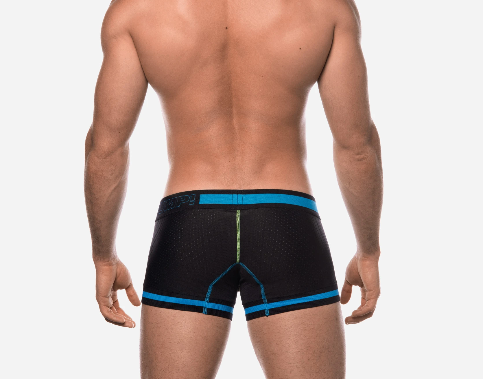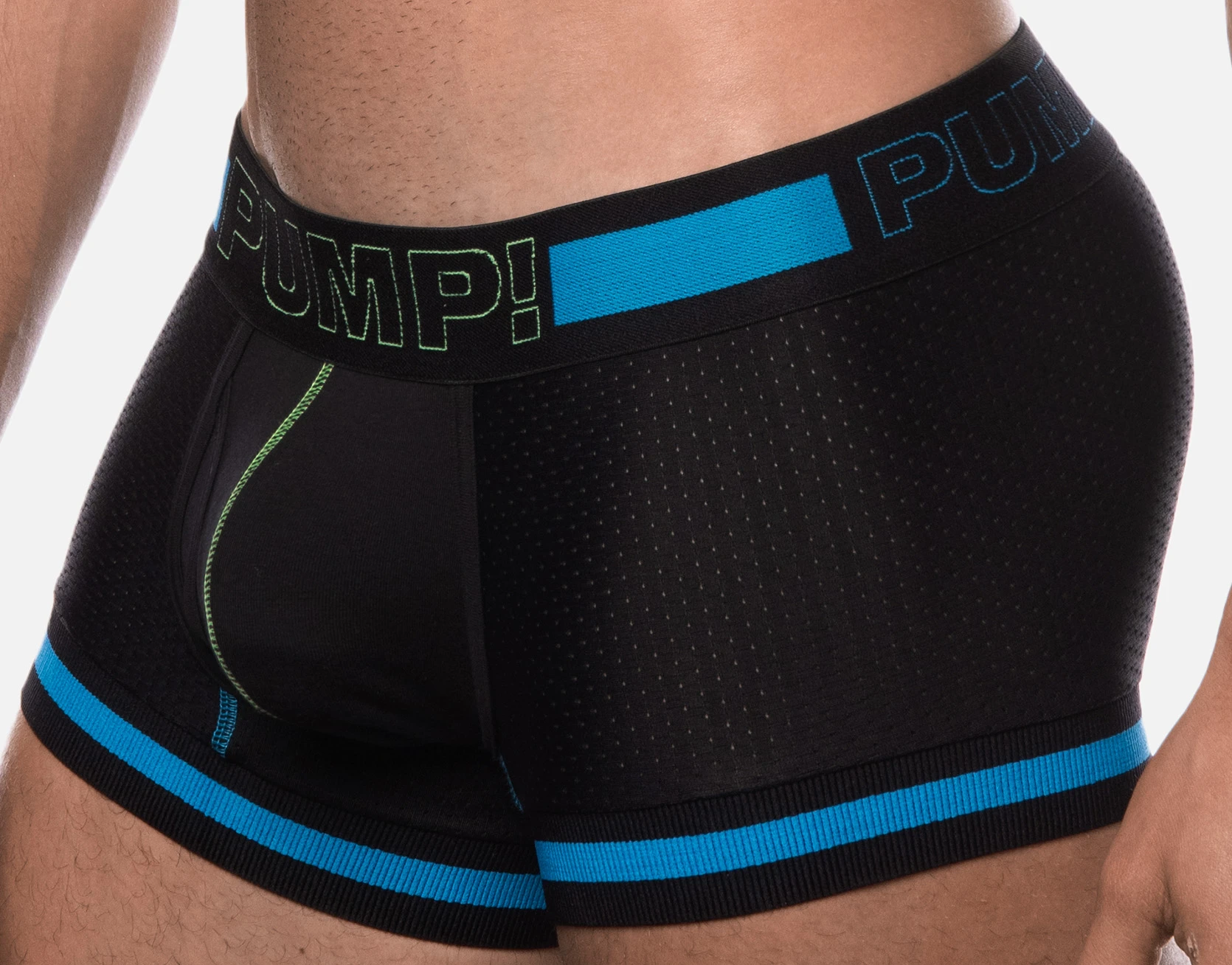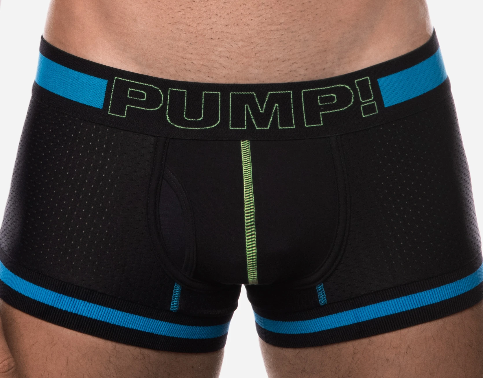 In order to be with you at all times, PUMP! has created the Touchdown Sonic Boxer with a black mesh body design, black cotton cup with neon green stitching complemented by a black, blue and neon green 45 mm elastic waistband. This is an all-day, all-night boxer that never gives in even in enemy territory.