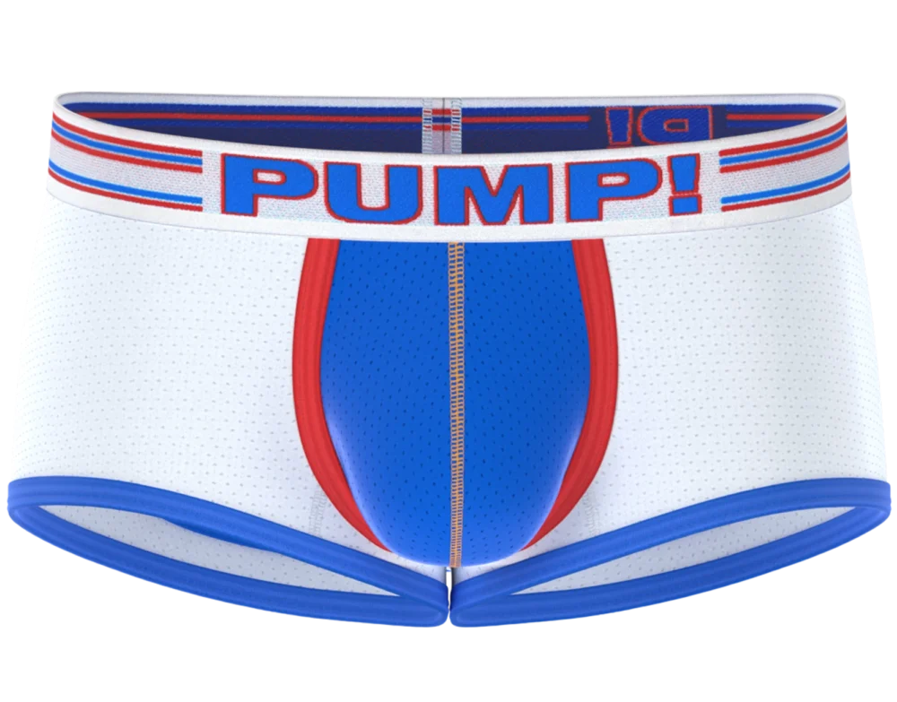 PUMP!’s Access Trunk just got a new paint job! With a bright white body and electric blue mesh cup both highlighted with Redhot piping and a racing-stripe-inspired waistband, featuring the classic PUMP! logo, you’ll cruise along in style and comfort. If that isn’t enough to have people pull over for a closer look, the exposed rear end with wide, supportive elastics to lift your assets will.