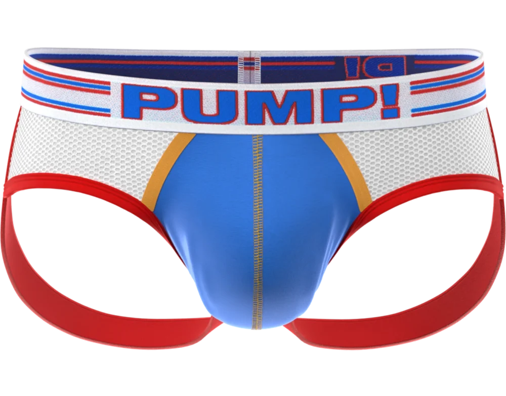 Strap in for a good time with PUMP!’s Velocity Jock. With its bright white body, electric blue mesh cup, and PUMP! logo you will be sure to turn heads. Designed with breathability and aerodynamics in mind, you are sure to be cool and comfortable both off and on the circuit, while the Redhot leg elastics both support and lift your bumper for the perfect confidence boost.